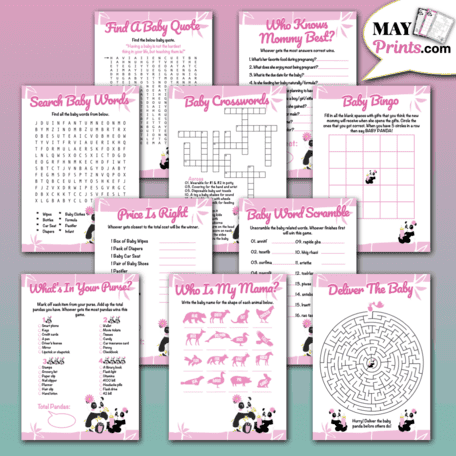 Panda Baby Shower Games Printable Set For Baby Girls