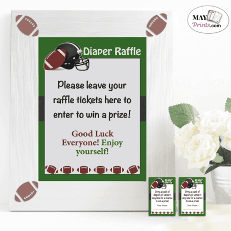 Football Baby Shower Diaper Raffle Sign and Tickets