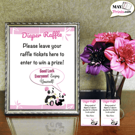 Pink Panda Baby Shower Diaper Raffle Sign and Tickets